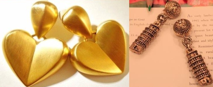 Heart earrings worn by Sonakshi Sinha and leaning tower of Pisa worn by Ileana Dcruz 🙂 Love your collection ! finger crossed 🙂