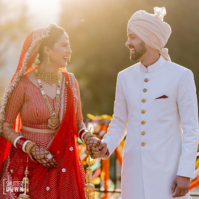 Such a gorgeous lehenga and how lovely does Sheetal look! Groom looks dapper too.. Congrats to the newlyweds