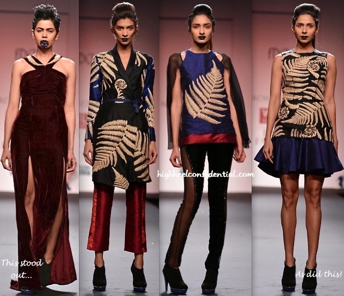 Isn’t this collection look like trying too hard?? Nachiket all of a sudden trying to do red carpet pieces?? And those wagging tongue tattoos are definitely a distraction,Can’t look past through to the clothes at all