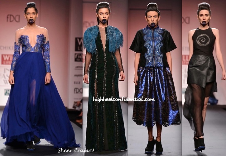 Third row, first blue gown is gorgeous…interesting collection. Perfect for Kangana or Deepika.