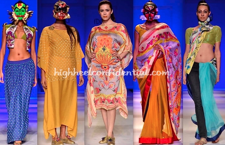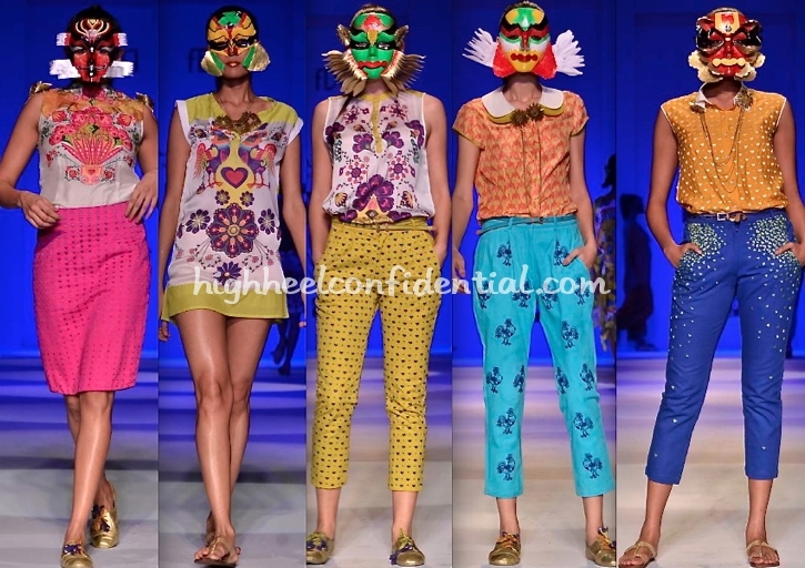 Known best for her quirky prints and kitschy aesthetic, Nida’s latest collection checked all those boxes. Amidst the kaftans, saris, separates and dresses, it was the embroidered rooster print cropped pants that stood out. Cute!